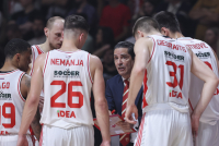 Košarkaši Crvene zvezde stigli su u Beogradsku arenu, gde ih od 20.30 čeka meča treći meč finala ABA lige sa Partizanom (TV B92).