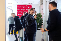 Oni su radili sa Obradovićevim pomoćnikom Đosepom Marijom Iskijerdom, a na samom kraju treninga pojavio se i Andrea Trinkijeri, trener Žalgirisa, čiji tim u četvrtak igra protiv Crvene zvezde.