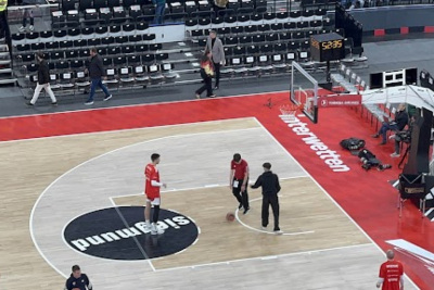 Košarkaš Crvene zvezde Filip Petrušev izašao na zagrevanje pred meč sa Bajernom u Minhenu u 28. kolu Evrolige.