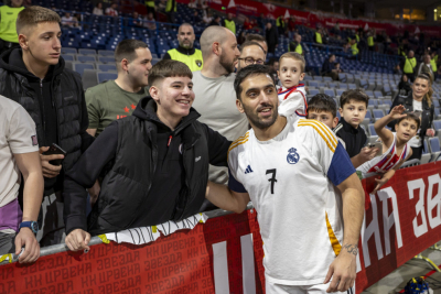 Ono malo navijača što se već bilo skupilo na tribinama ga je pozdravilo aplauzom i pokličima. Mnogi od njih su uspeli i da se "ogrebu" za fotografiju sa plejmejkerom Reala.