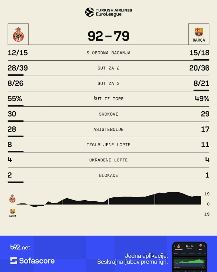 Od tog trenutka, pa sve do kraja meča jedino što je Barselona uradila, to je da su uspeli da dođu do samo dva poena prednosti za Monako sredinom drugog perioda.
