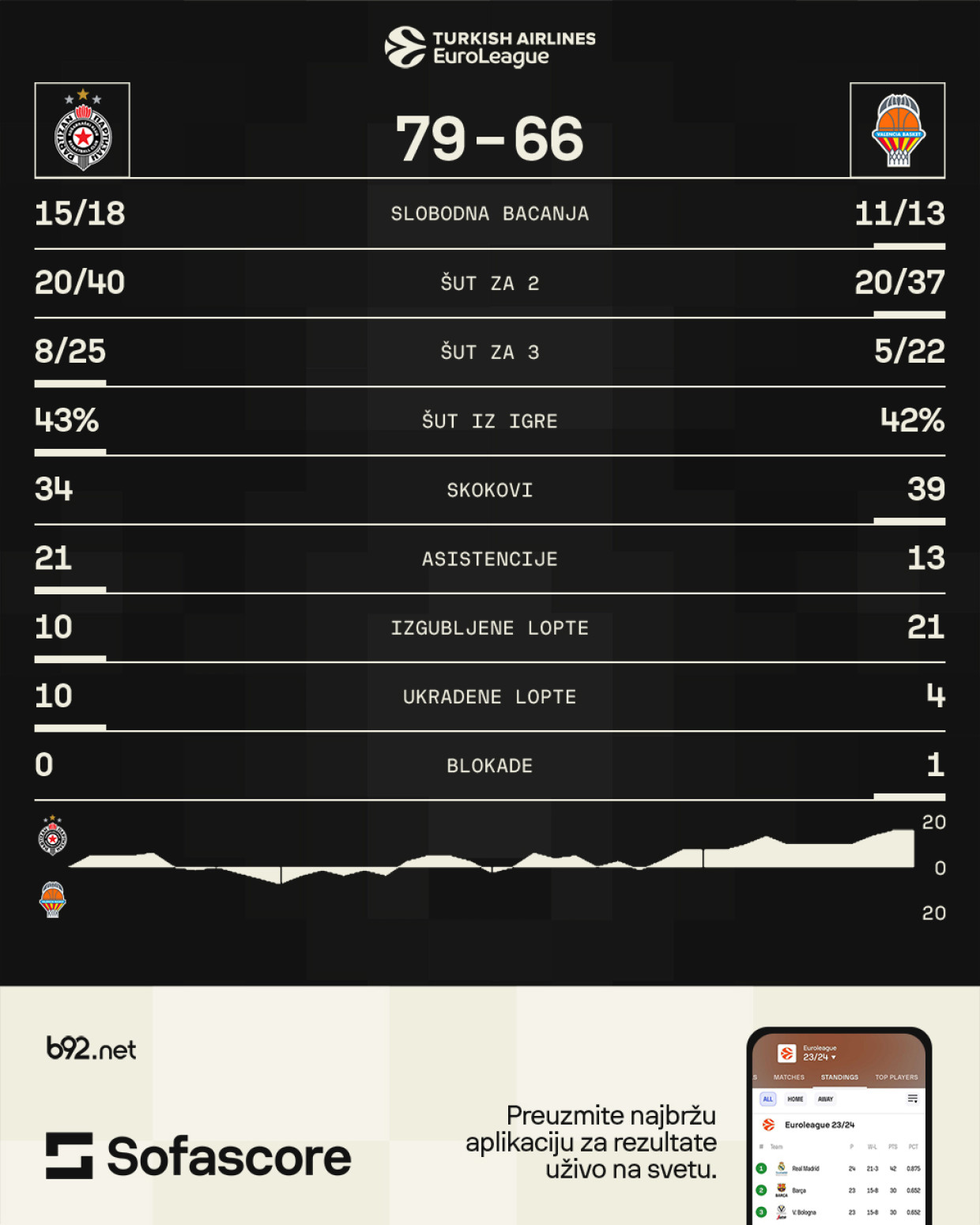 Ispratili smo pobedu Partizana protiv Valensije (79:66), u okviru poslednjeg 34. kola Evrolige.