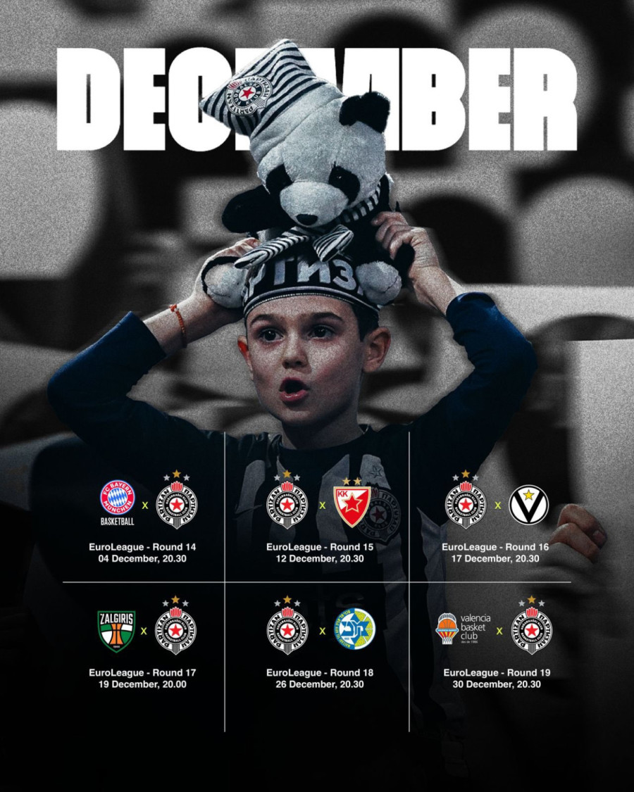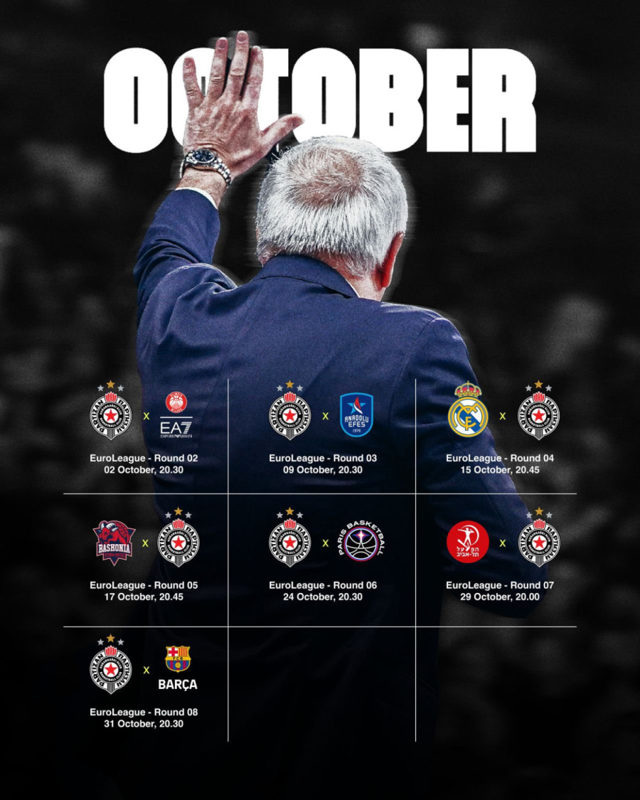 KK Partizan raspored Evrolige za sezonu 2025/26