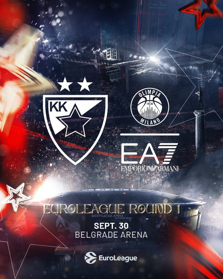 1. kolo, 30. septembar: Crvena zvezda – Olimpija Milano