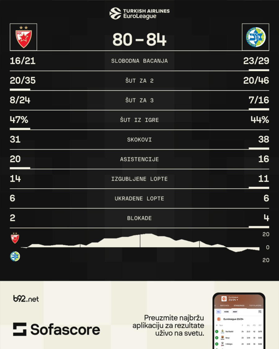 Crveno-belo su početkom drugog poluvremena imali ogromnu prednost od čak 18 poena, ali je umor prouzrokovan skraćenom rotacijom na kraju koštao ekipu Janisa Sferopulosa pobede. Prvi od Makabija u Beogradu od 2013. godine.