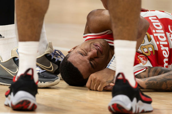 Brazilac je u finišu susreta u kom je njegov tim poražen od gostiju iz Tel Aviva (80:84), bio u duelu sa Bonzijem Kolsonom posle kog se našao na parketu uz bolnu grimasu na licu.