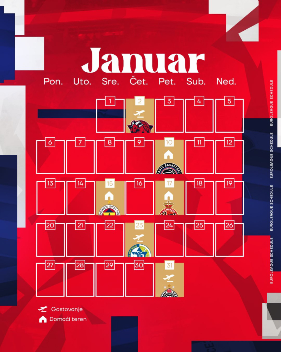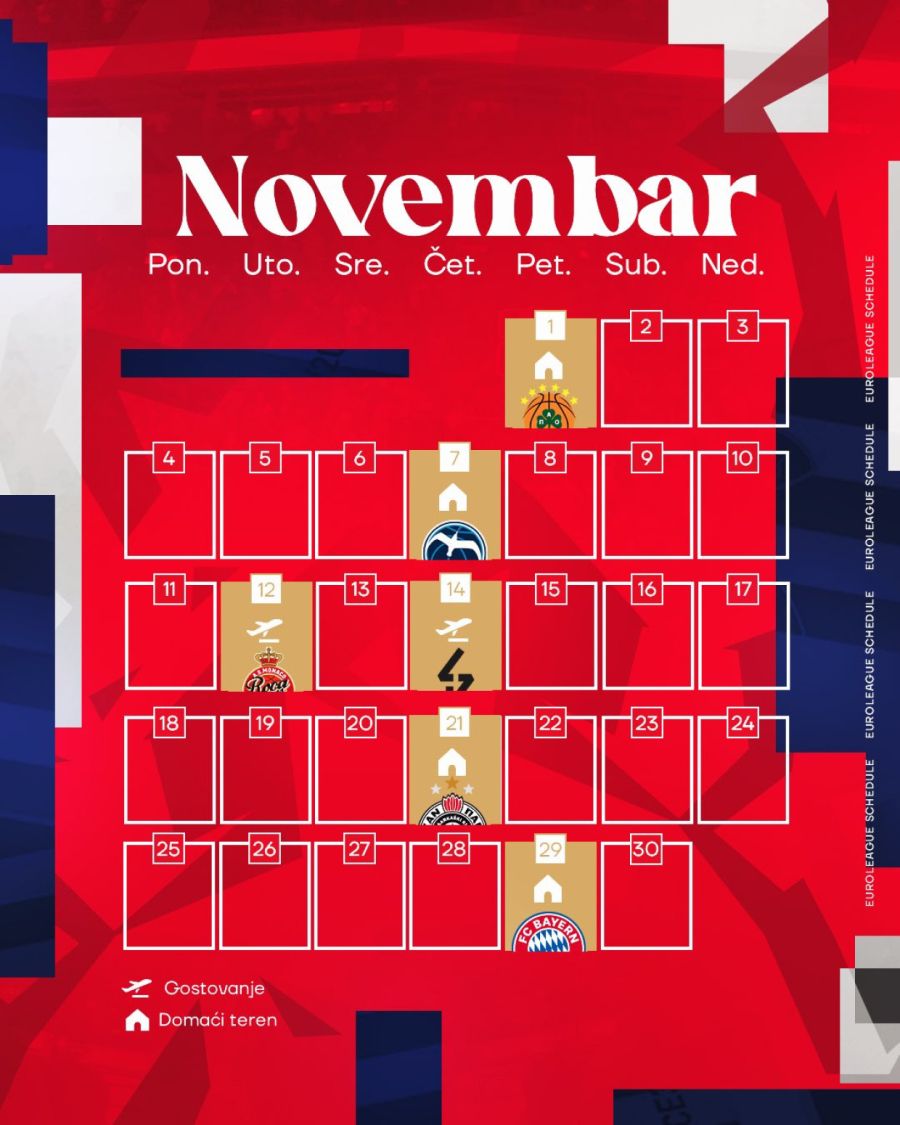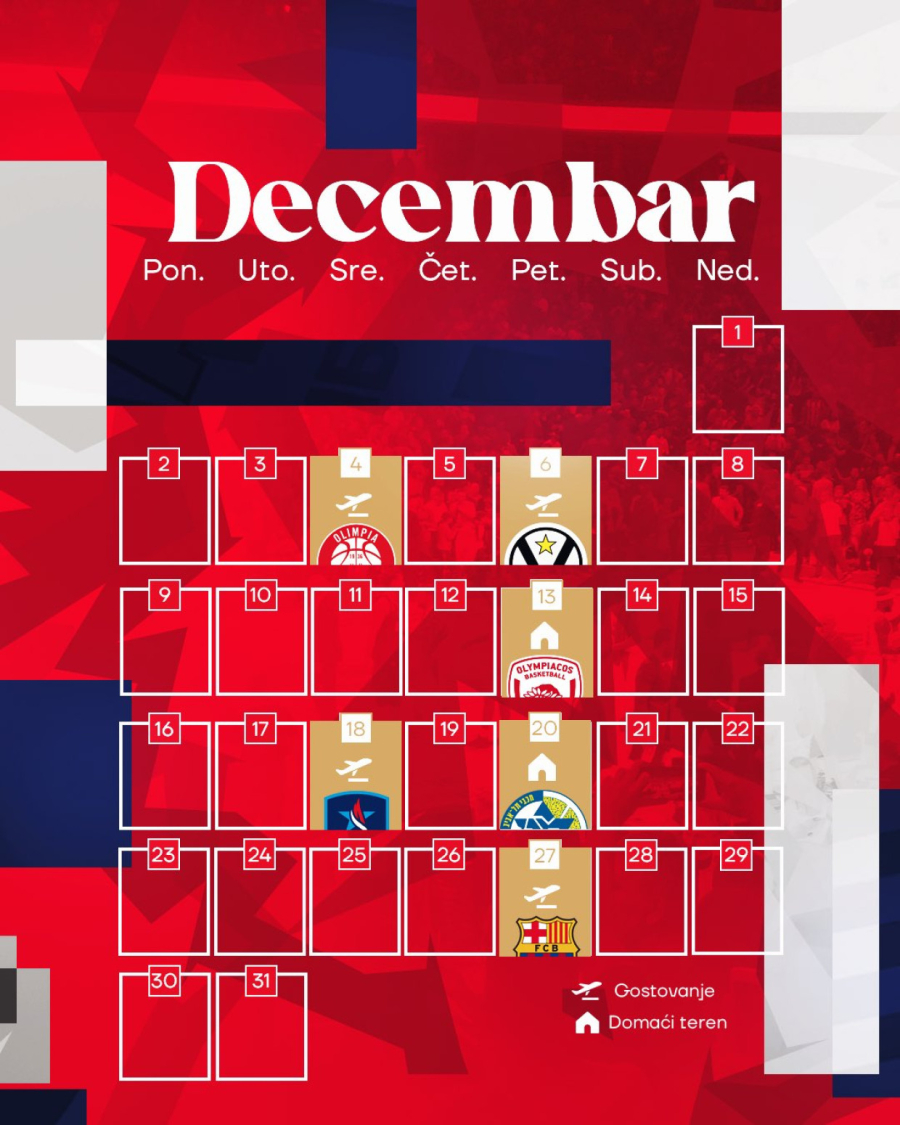 Dolazi na red i prvi evroligaški derbi sa Partizanom u 11. kolu, gde su crveno-beli domaćin, a potom i duel sa Bajernom kod kuće. Drugi duel sa crno-belima je rezervisan za 24. kolo u Januaru.