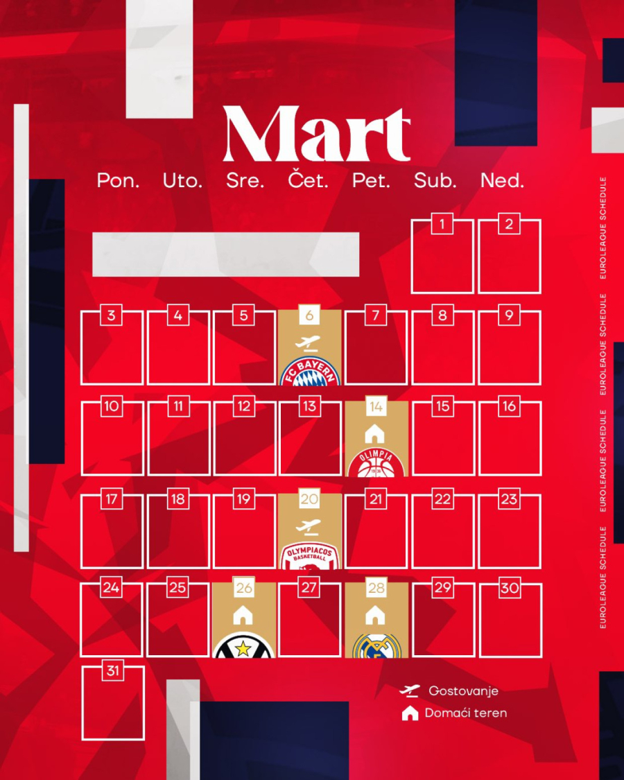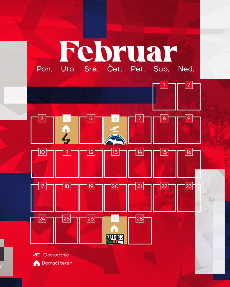 Zvezda u osmoj rundi dočekuje Albu, potom crveno-bele očekuje novo duplo kolo, treće u kratkom vremenskom periodu, dva gostovanja u Francuskoj Asvelu i Monaku.