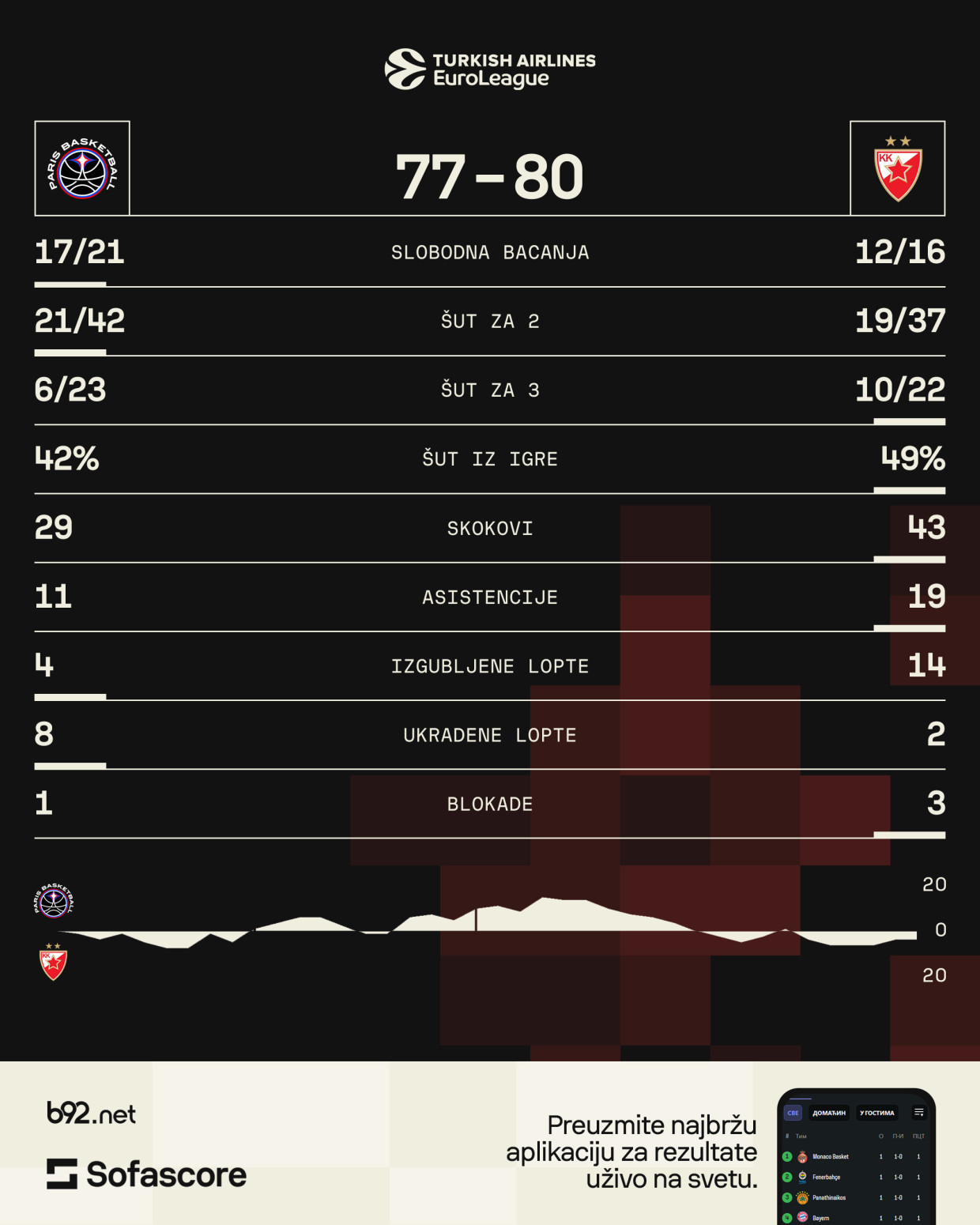 Ispratili smo utakmicu Pariza i Crvene zvezde, gde su crveno-beli uspeli da upišu pobedu u dramatičnoj završnici (77:80).