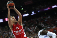 Gosti  iz Atine su mini serijom Aleka Pitersa pobegli na 84:78, a onda sledi trojka Rićija i polaganje Mirotića za 84:83, da bi Olimpijakos posle  sjajne akcije promašio šut za tri kada je Vildosa bio neprecizan.