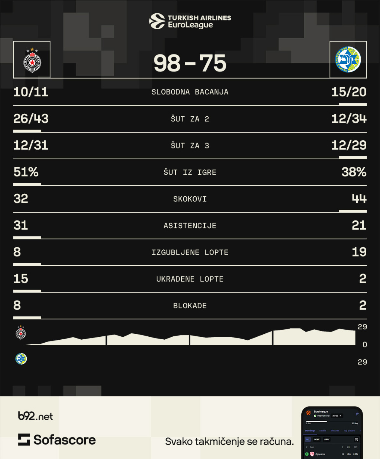 "Veoma teška noć za nas, vrlo loša utakmica. Od početka do kraja. Da izgubiš loptu 19 puta ovde nije dobro. Izbacili su nas iz ritma, izgubili smo ritam – imali su 15 ukradenih lopti, to je luda brojka. Postigli su lakih 30-40 poena. Nisam očekivao ovo. Ponekad je do energije, ali nema izgovora. Partizan je od početka potpuno kontrolisao utakmicu".