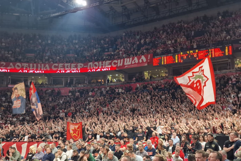 Košarkaši Crvene zvezde od 20 sati dočekuju Fenerbahče u meču 21. kola Evrolige, a navijači su okupirali prostor ispred Beogradske arene dva sata pred početak susreta.