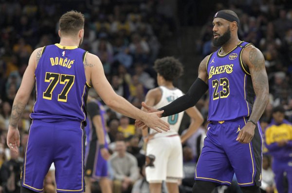 Akteri su bili "uobičajeni krivci" Luka Dončić i Lebron Džejms, koji su u finišu prvog poluvremena ponovili čuveno zakucavanje "kralja" iz dana provedenih sa ekipom Majami Hita.