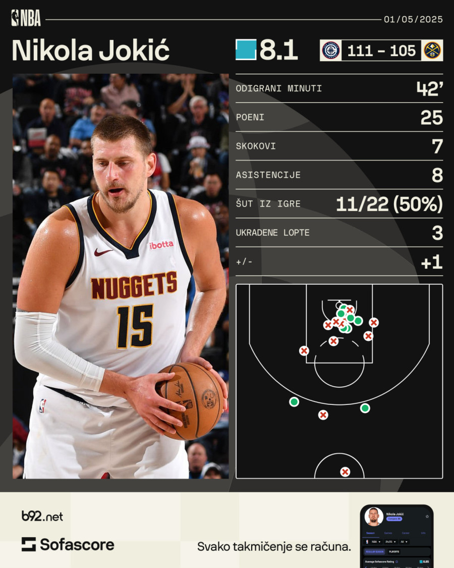 I zaista deluje da je taktika uspela jer je Jokić u drugom poluvremenu "nestao", a ekipa izgubila i čeka je utakmica broj 7 u Bol Areni u Denveru.