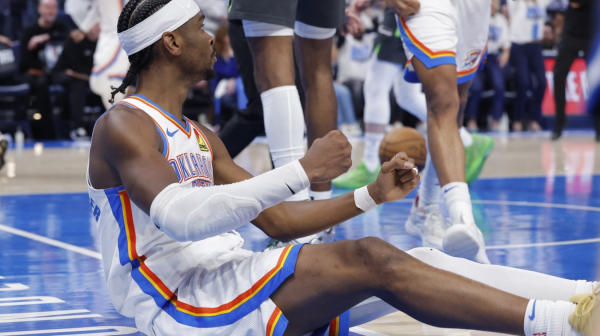 U NBA store smo ušli neposredno pred prvu utakmicu velikog finala između Oklahome i Indijane, pa ne čudi što je ono što vam prvo "izbije oči" po prolasku kroz vrata dresovi najboljih igrača tih ekipa, Šeja Gildžes-Aleksandra i Tajriza Haliburtona.