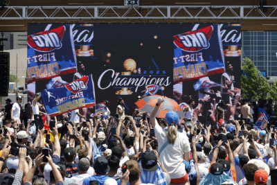 MVP finala Šej Gildžis-Aleksander, Ol-star Džejlen Vilijams i njihovi saigrači prošli su kroz centar grada u otvorenom autobusu.