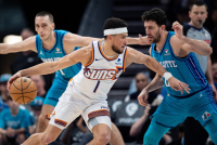 Košarkaši Finksa pobedili su Šarlot 107:96 kao gosti, a Buker je bio najbolji u pobedničkom timu sa 21 poenom, 11 asistencija i šest skokova.