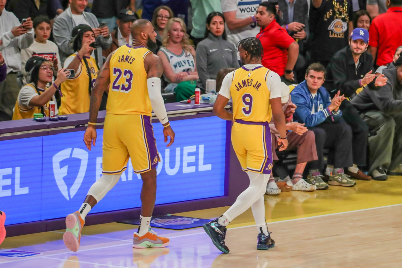 Lebron je odmarao nakon što je već odigrao 13 minuta, a onda je zajedno sa sinom prišao zapisničkom stolu da zatraže ulazak u igru i upišu se u istoriju.