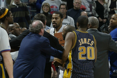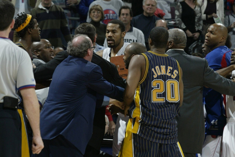 Vratićemo se korak unazad. Finale Istoka 2004. godine je odigrano između Detroit Pistonsa i Indijana Pejsersa, a dve strane se nikako nisu volele i netrpeljivost su izražavali i na parketu i u medijima.