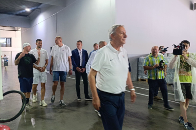 Pored njega na istom događaju je i Ognjen Dobrić i selektor Srbije Svetislav Pešić, koji će se kasnije obratiti medijima.
