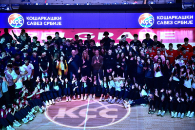 Na početku zvaničnog dela programa, mladim košarkašicama i košarkašima dobrodošlicu u Beogradsku arenu poželeo je direktor ovog klutnog zdanja Stefan Babić.