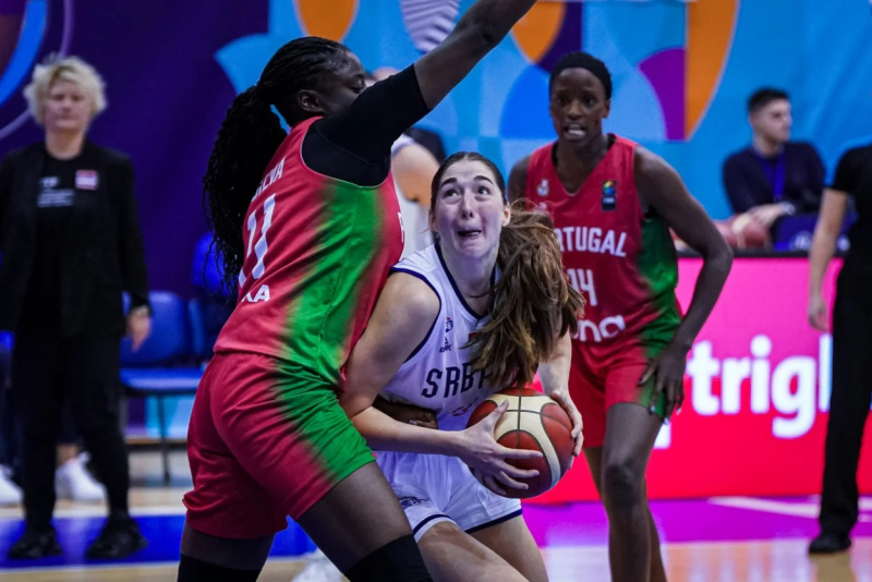 Srbija je u Hali sportova "Ranko Žeravica" pobedila Portugal 71:37 i upisala je treći trijumf u borbi za odlazak na šampionat Evrope.