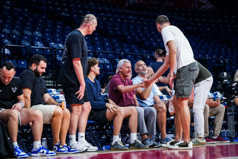 Kako se može videti na fotografijama iz Arene, Vukčević je utakmicu gledao iz prvog reda, u kom je sedeo i selektor Pešić, sa kojim se pozdravio.