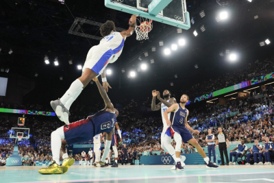 Francuski košarkaš Geršon Jabsuele spektakularnim zakucavanjem preko Lebrona Džejmsa obeležio je meč za zlato na Olimpijskim igrama.