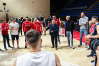 Čović je pre svega pričao o aktuelnom trenutku košarkaške reprezentacije Srbije, novom početku sa Svetislavom Pešićem i pozvao je navijače da u nedelju ispune halu "Pionir" na startu kvalifikacija i utakmici sa Danskom.