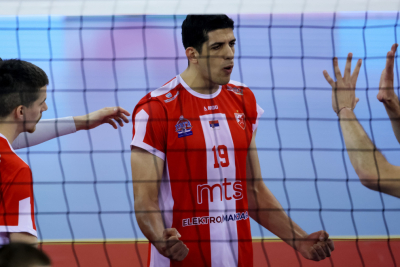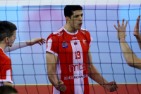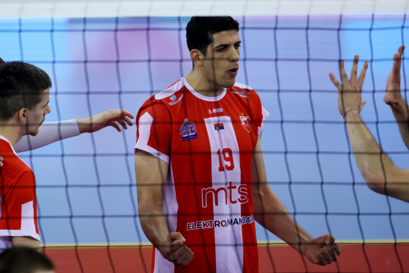 Primač servisa Zvezde Aleksandar Blagojević vezao je dva as poena na početku četvrtog seta i doneo svom timu prednost 9:7.