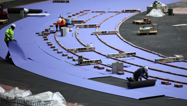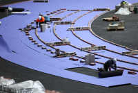 Ručno se nanosi 1.800 kantica lepka, a stazu će činiti više od 1.000 rolni materijala.