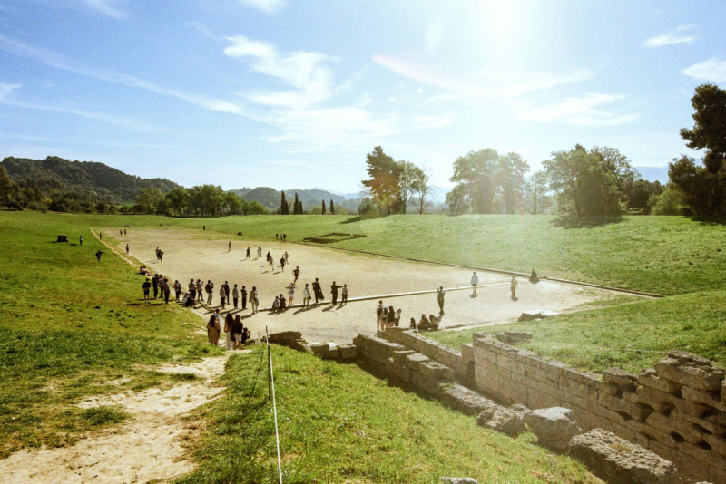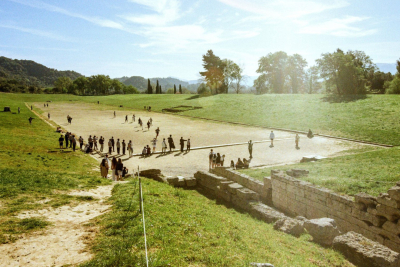 Prema grčkom putopiscu Pausaniji, koji je pisao 175. godine nove ere, jedino takmičenje koje je prvo održano bilo je trka zvana stadion, trka na oko 190m.