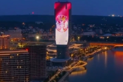 Poruka sa Kule Beograd: Srbija do pobede! FOTO