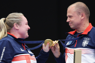 Arunović i Mikec su osvojili zlatnu medalju na Olimpijskim igrama u Parizu u takmičenju miks parova u disciplini vazdušni pištolj 10 metara.