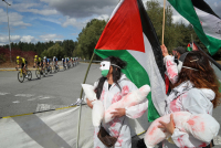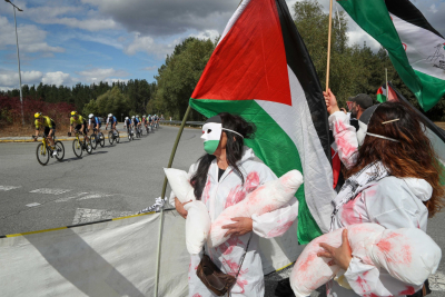 Protesters have successfully blocked Israel’s team from La Vuelta cycling race in solidarity with Palestine — demanding their immediate expulsion!