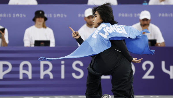 Svetska federacija za sportske igre, telo koje je zaduženo za brejkdens na OI saopštilo je da je ona diskvalifikovana zbog prikazivanja političkog slogana na svojoj odeći tokom prekvalfikacione borbe.