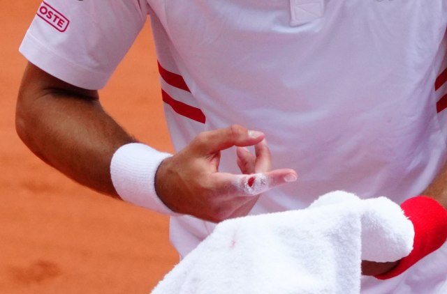 Odlučujući peti set je počeo na maltene nenormalan način. Novak Đoković je povredio prst i sa zemlje došao do poena, a potom i do brejka.