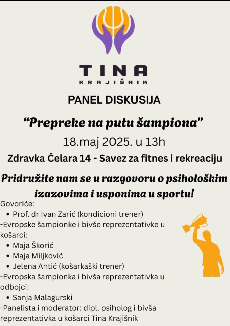 Panel će voditi Tina Krajišnik, a na njemu će govoriti Ivan Zarić (kondicioni trener), bivše košarkašice i reprezntativke Srbije Maja Škorić i Maja Miljković, Jelena Antić (košarkaški trener) i Sanja Malagurski, bivša odbojkašica Srbije.