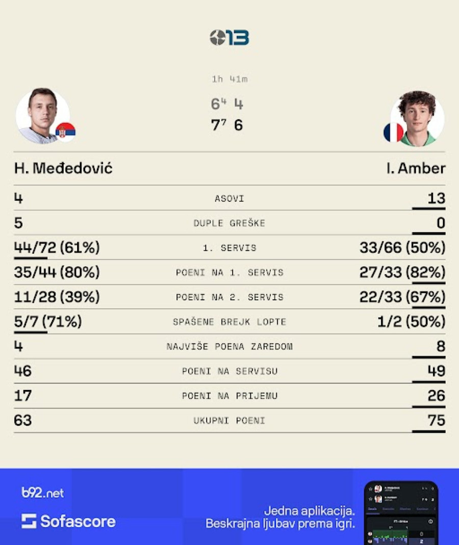 Međedovića sada čeka nastup na turniru u Dohi, gde igra protiv Stefanosa Cicipasa u prvom kolu.