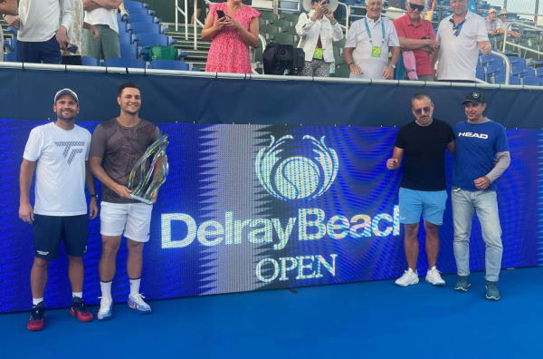 Nakon što je osvojio titulu u singlu, pobedivši u finalu Španca Alehandra Davidoviča Fokinu 3:6, 6:1, 7:5, srpski reprezentativac je uspeo da osvoji i pehar u dublu u Delrej Biču, zajedno sa Brendonom Nakašimom protiv Amerikanaca Harisona i Kinga sa 7:6 (7:3), 1:6, 10:3.
