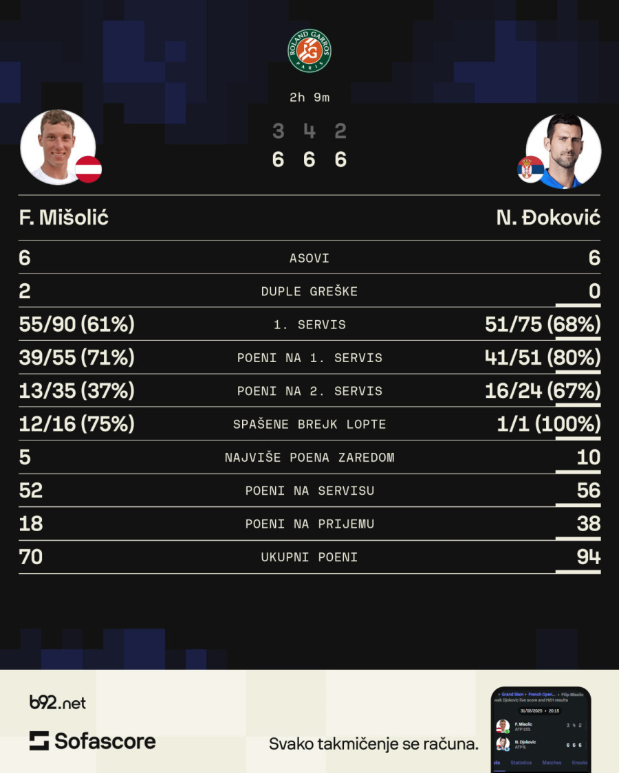 "Igrao dam dobro, ali svaka čast i Filipu što je igrao hrabro i dobro. Iznenadio me je nivoom igre, svaka čast, nikad nismo igrali dosad. On je Hrvat iako igra za Austriju, drago mi je što smo igrali, imali smo lepu razmenu na mreži. Ali mislim da sam odigrao dobro sve u svemu."