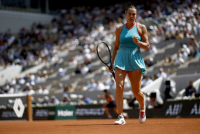 Peta teniserka sveta Iga Švjontek, trostruka uzastopna šampionka Otvorenog prvenstva Francuske, plasirala se u četvrtfinale drugog grend slema u sezoni, pošto je u Parizu savladala Kazahstanku Elenu Ribakinu sa 1:6, 6:3, 7:5.
