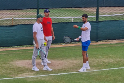 Rešenje, ispostaviće se privremeno, je bilo odlazak u Trening centar koji se nalazi odmah pored Vimbldona, u zatvorenom, ali na betonskim terenima.