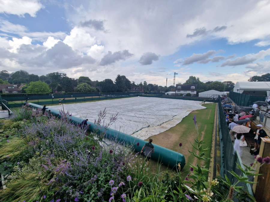 Ipak, kada je po prvi put želeo da kroči na teren oko 13 časova, uvek nepredvildljiva londonska kiša mu je poremetila planove.