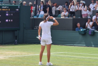 "Bilo je dosta naših navijača, hvala im mnogo. Pre svega hvala trenerici Milani Spremo, koja je došla sa mnom na Vimbldon. Nadam se da će me navijači pratiti do kraja. Trudim se da ne čujem nikoga osim svojih misli i trenera, trudim se da se usredsredim na poen i na disanje, ali na kraju sam ih sve čula, slikali smo se na kraju".