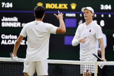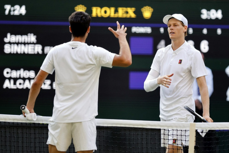 Siner je slavio u Londonu posle preokreta, a u jednom momentu, Alkaras se okrenuo ka svom boksu i rekao da je Siner mnogo bolji od njega sa osnovne linije.