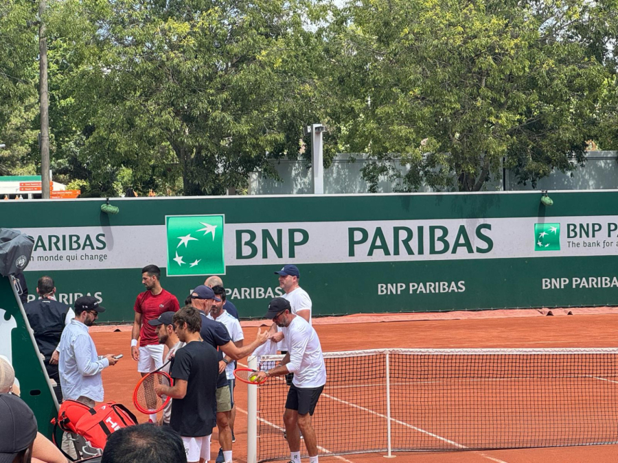 Pošto je trening bio rezervisan na sat i po vremena, bilo je jasno da će Novak i Flavio nakon razmene udaraca, odigrati i sparing duel.