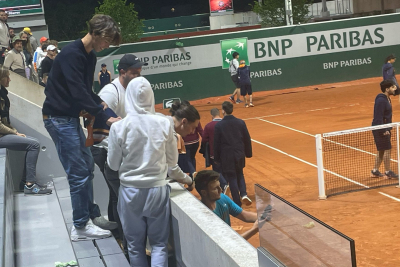 Popularni Miša je slavio protiv Brazilca Tijaga Monteira sa 3-1 u setovima, a u kompleksu pariskog Grend slema odzvanjale su pesme, "grobarske" malo modifikovane.