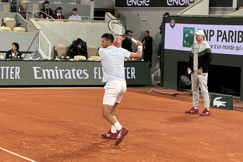 Novak se zagrevao za premijeru, uz njega bio i novi trener FOTO