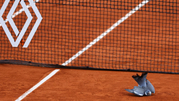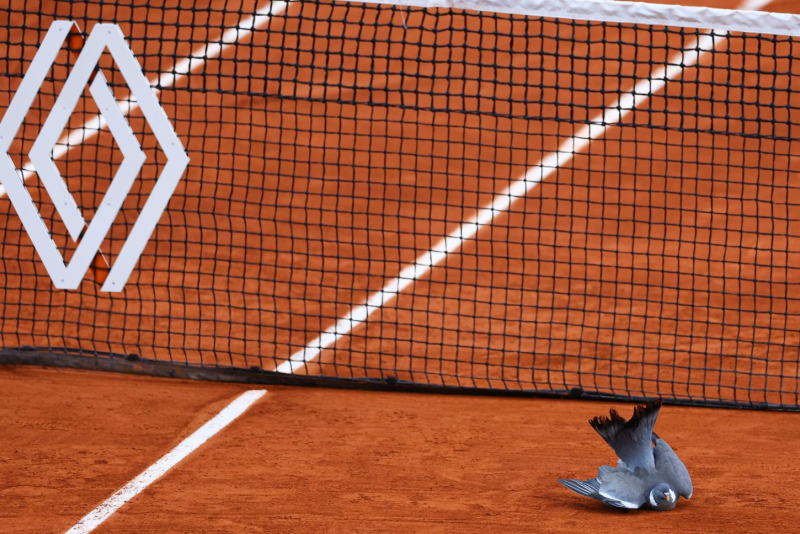 Golub je udario u krov dvorane Rolan-Garosa i dezorijentisan, pao je na teren za vreme meča, koji je zbog toga morao da bude prekinut.